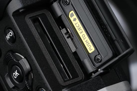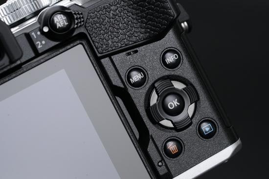 再来看操作区,主操作区的方向键、菜单、信息、回放、删除按键清晰明了,上手丝毫不会有难度。拇指一侧的对焦&曝光锁定按钮,结合手自动对焦切换拨杆的设计,也很符合摄影师的操作习惯。