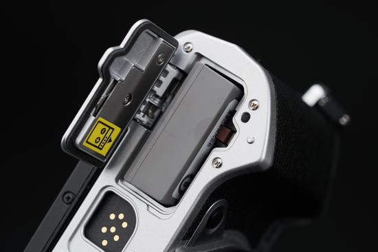 机身底部,三脚架接口、电池手柄接口以及电池仓,从左到右依次排列,井然有序。