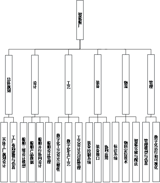 主要包括智能船厂总体规划、设计、工艺、装备、物流、管理等六部分,如图5所示。